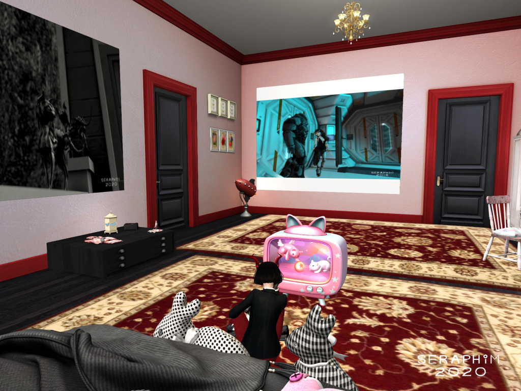 … Seraphim thinks that’s what’s at play with her new telly. The kitties in it aren’t even stuck, they look perfectly happy… but they aren’t actually doing anything, except looking really, really cute… Seri can’t stop adoring them.