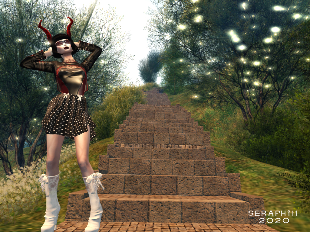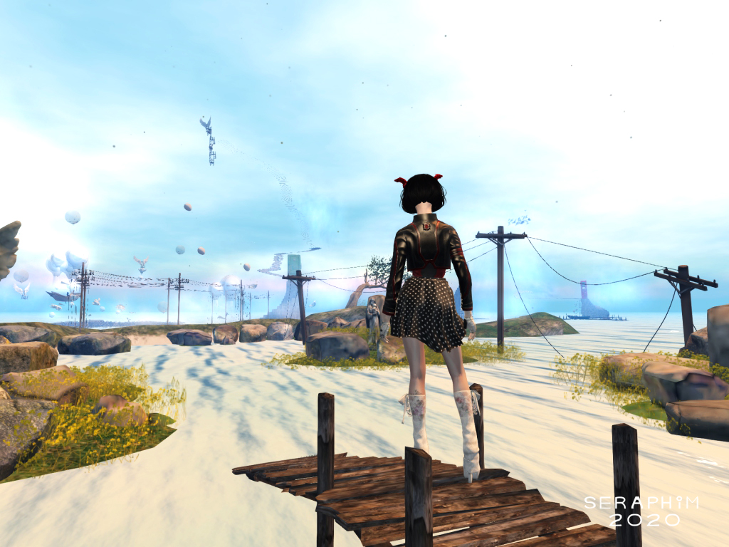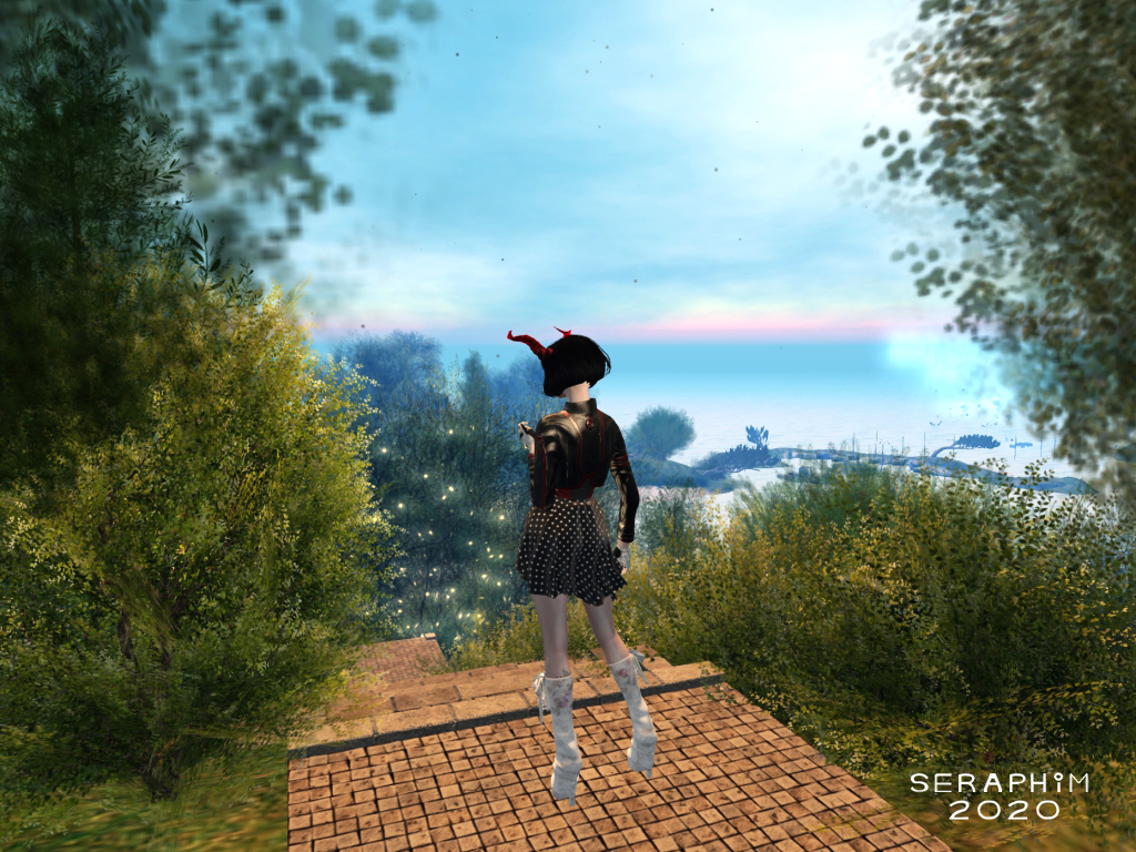 Due to the need to lower her monthly SL costs, Seraphim has been steeling herself, over the last few months, to take New Placebo Gallery down, and sell/abandon the land. She’s been slowly taking stuff out of the gallery the last 6 weeks, or so, but decided to bite the bullet and go for it, this morning. She’d just started taking pictures down, when her friend Adelina, asked her what she was doing. Seraphim told her, and Adelina said she had a surprise for Seri, which turned out to be this space, on Adelina’s land, where Seri could set up a gallery…