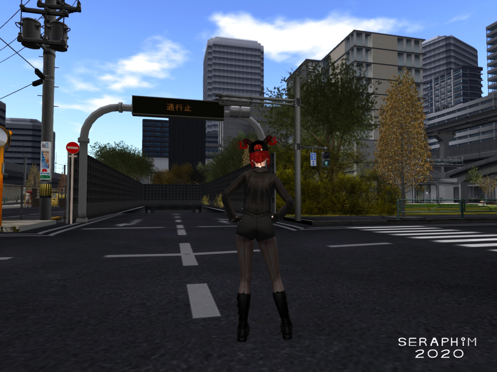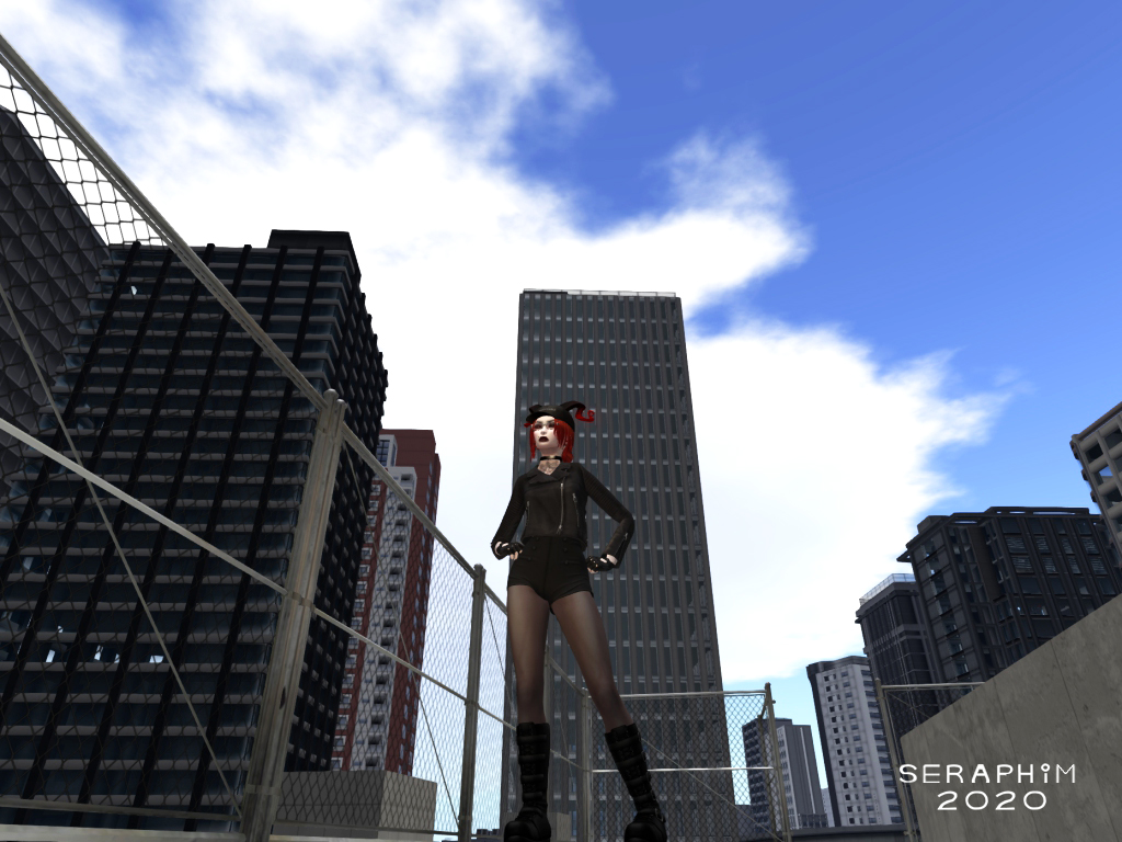 … almost beneath R2. I straight away noticed a very colourful floor on the building beside the overpass, it jumped out because nothing in Mopire City is that colourful. I had to go and see. I jumped off the overpass, made my way to the building, and climbed five floors up, (Mopire City is one of those places where you actually have to physically make your way… if you try to ‘double-click TP’ somewhere, you go straight back to the ‘landing area’) and went inside…