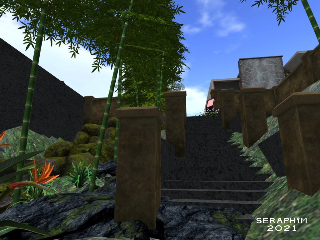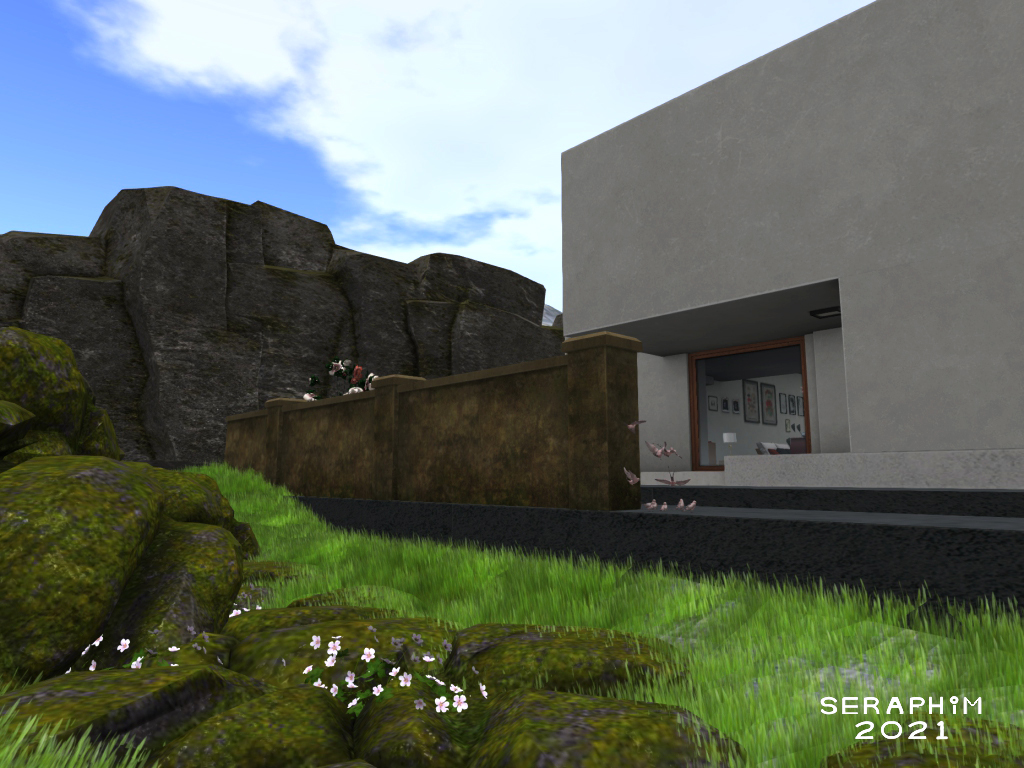 I have been working, and working, since my last post about my new home, and have been having a hugely enjoyable time. I had over a thousand prims to play with, for my re-decorating/re-landscaping, and using them has been such sweet pleasure…
