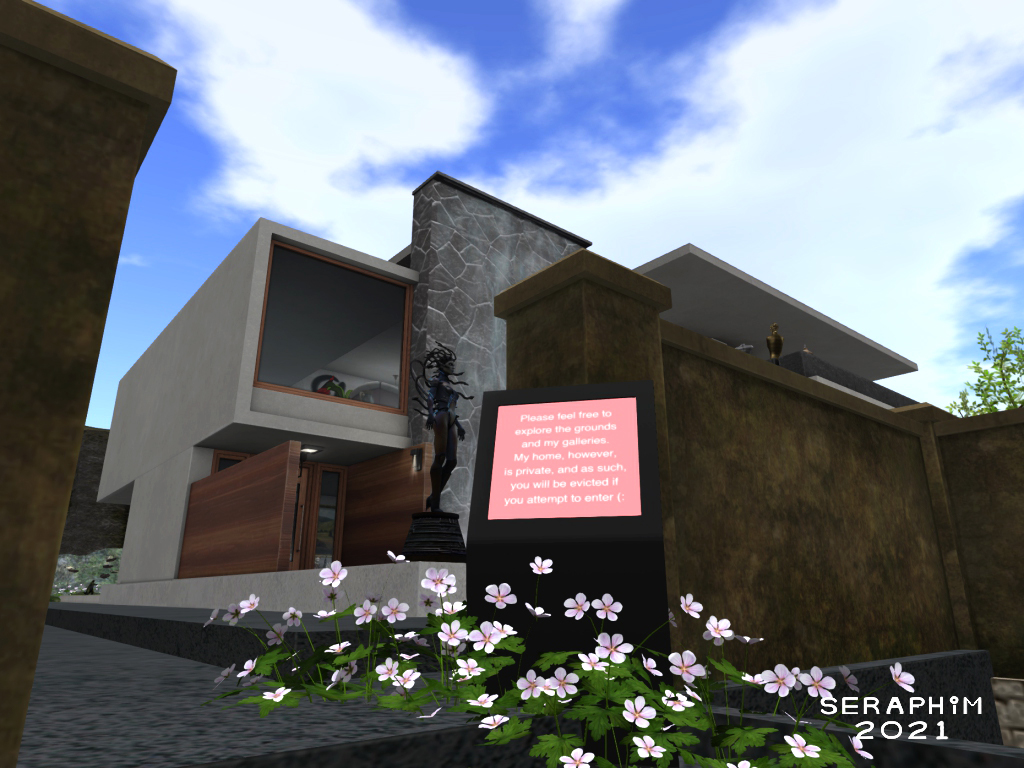 … I initially left my previous home open for visitors to enjoy. One day, I came home, and two total strangers were having sex in one of my bedrooms. They never even had the decency to say anything to me, just vanished a few minutes after my arrival. I was so pissed off, I have since made my home out-of-bounds to all unknown visitors. I have placed several prominent, pleasant, but definitive, signs around my new home, stating that visitors are welcome to explore my grounds, and my galleries, but will be evicted should they attempt to enter my home…