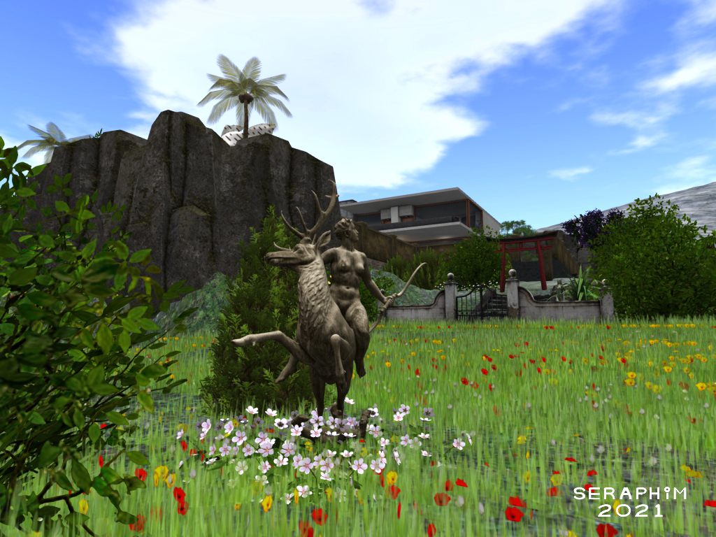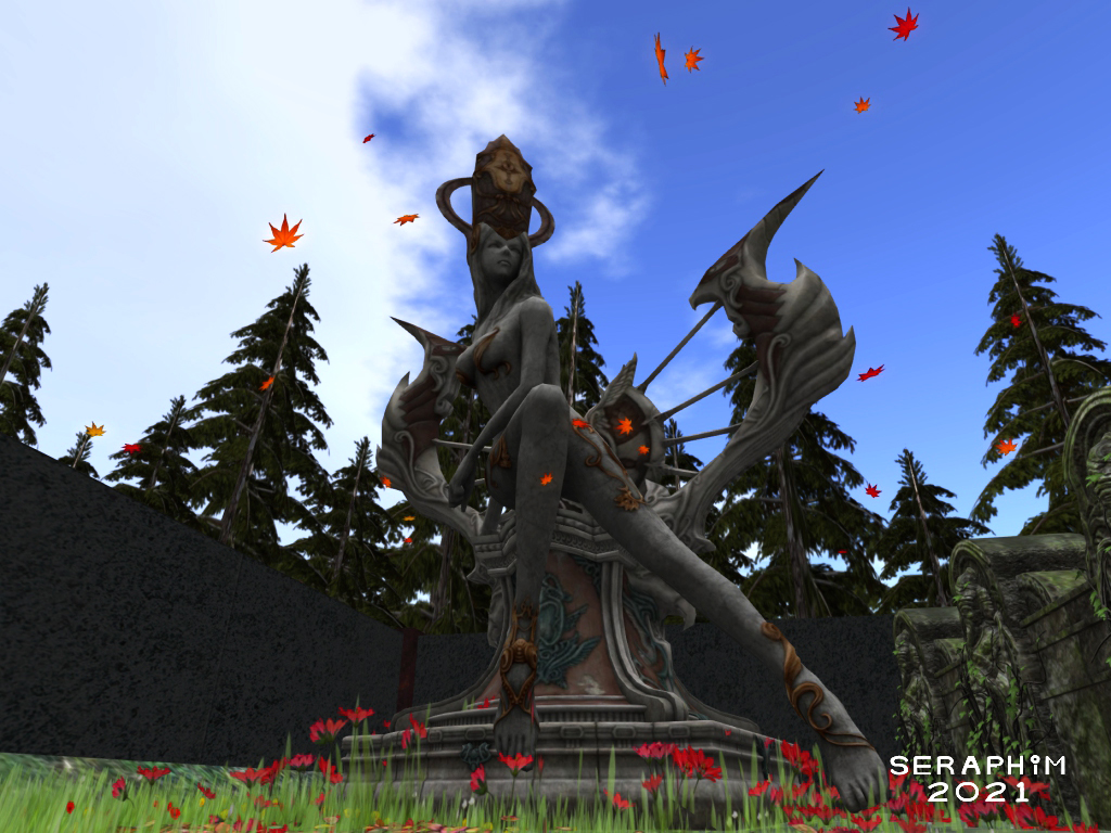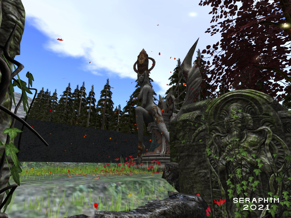 … I am Seraphim, queen of this place, older than all my statues combined. This is my magical queendom, you are very welcome to visit, just not my actual home, unless I know you, then it’s all cool (: