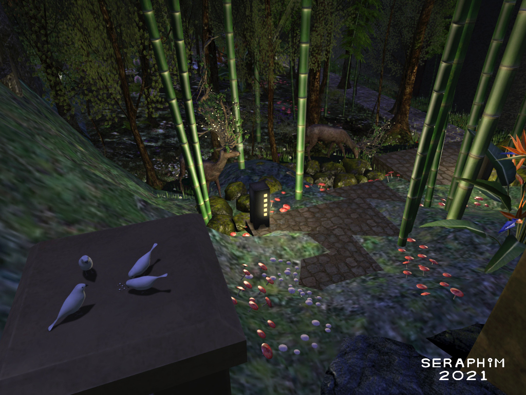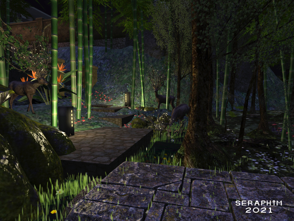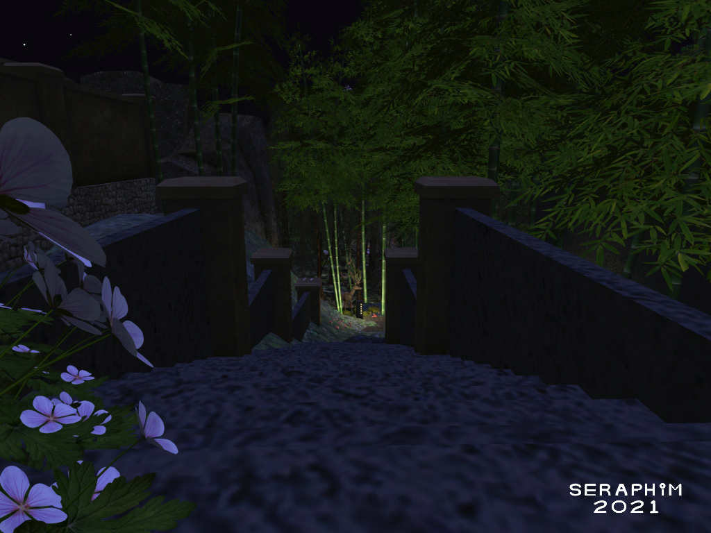 … so I installed some of my trusty Japanese stone lanterns and a bit more paving, so the path was more obvious and manageable from the bottom of the stairs to the old path that used to run down the side of my chateau, before I pulled the chateau down, and let nature run wild in what was left of it’s footprint…