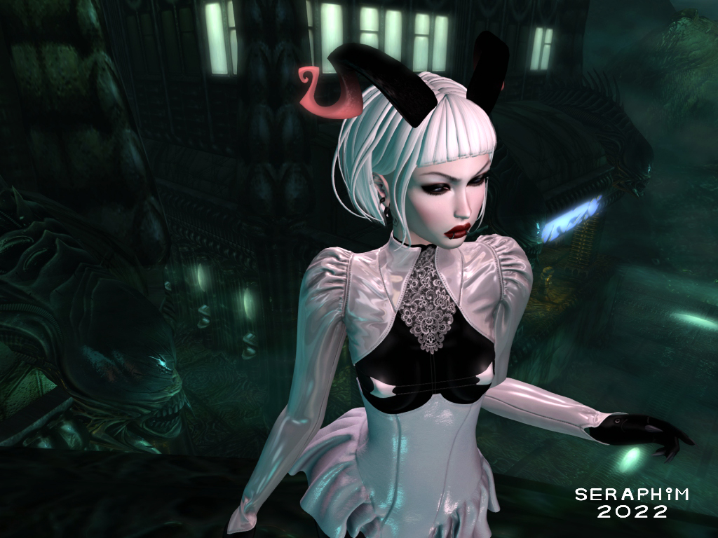 I visited Drune: Giger City today, my first 2022 outing, and such a relief to have a non-Christmas-themed destination to visit! This time, Hera is paying fully acknowledged homage to H R Giger. However, the first thing I noticed, on the landing platform, was this wonderful homage (deliberate or not) to Jim Burns, whose organic, insect-like ships fit right in with the feel of Giger City…