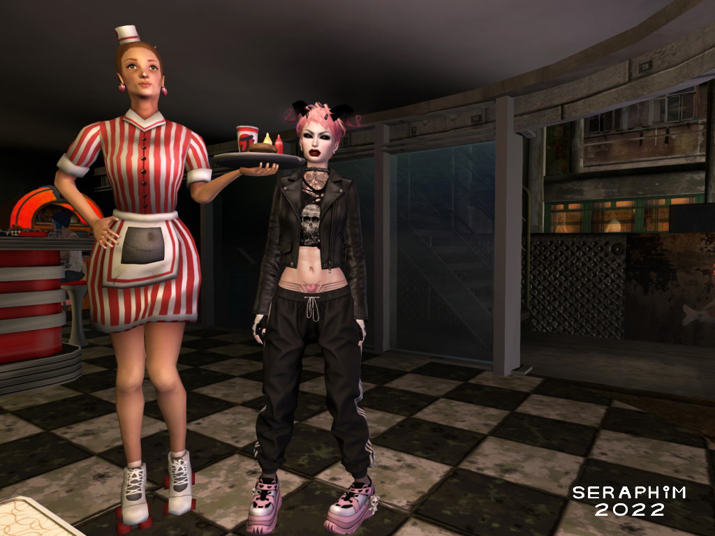 … this Amazon from a 1950’s drive-in must have gotten herself stuck in a time anomaly, then just kept on delivering junk food in the gear she arrived in…