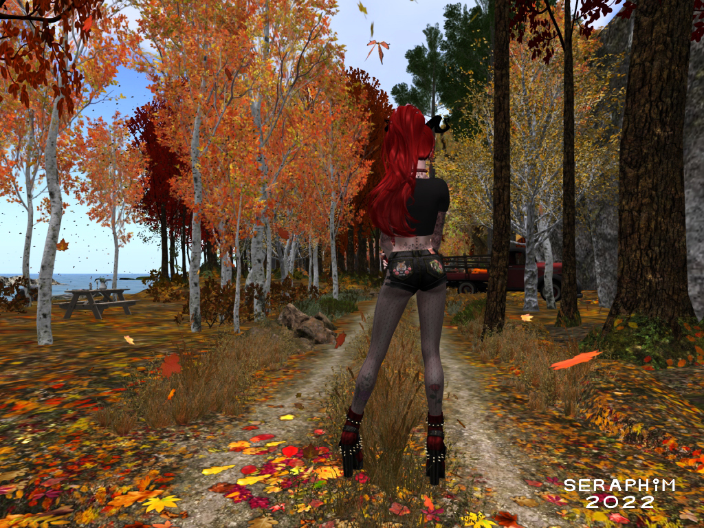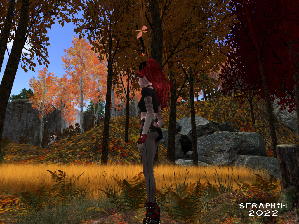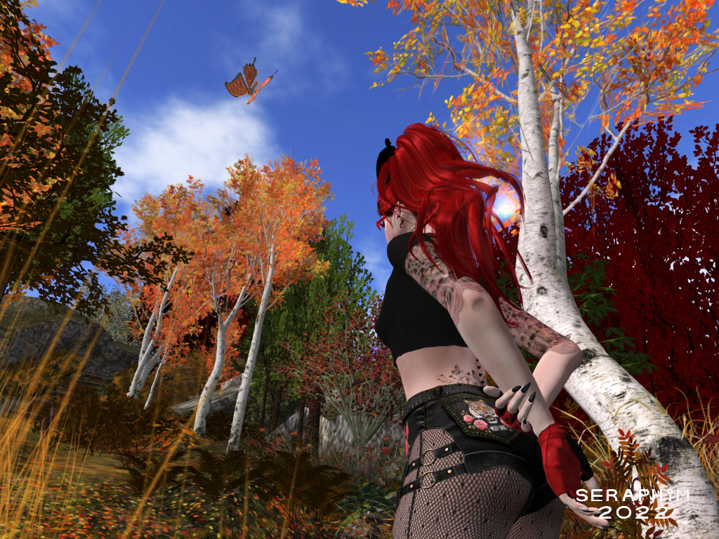 … this sim is covered in absolutely gorgeous, autumnal forest. We kept seeing what we thought were sun dogs through the canopy, but we later realised there is an aurora effect in the sky…