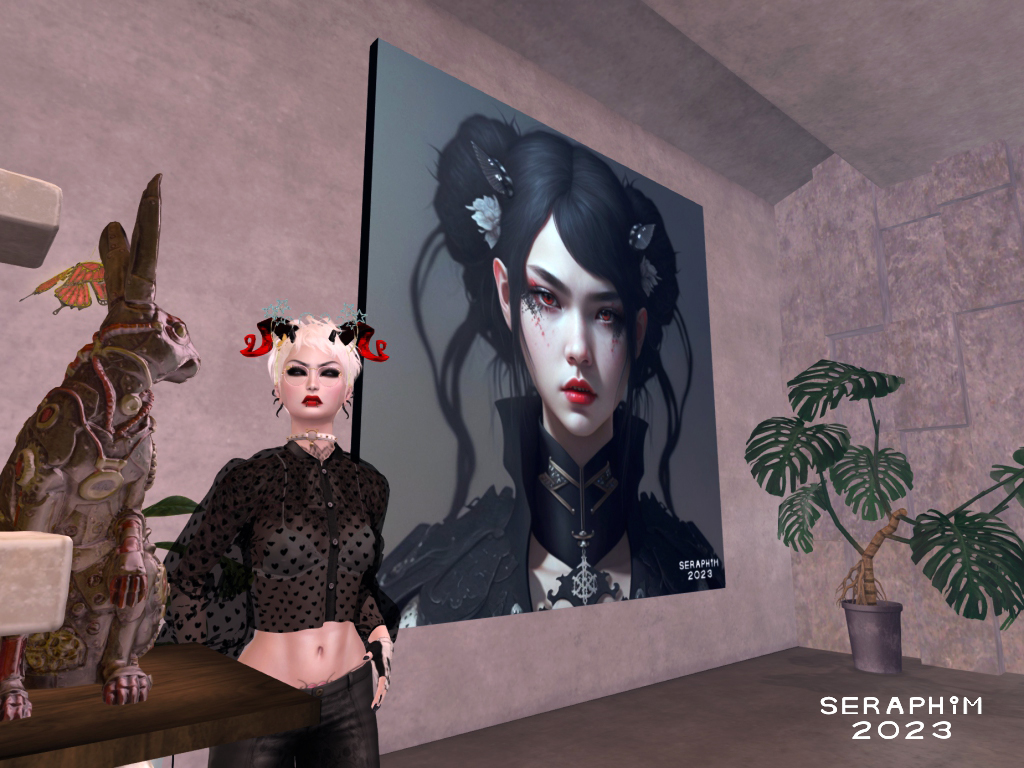 … when I first started using Midjourney a few months ago, I had to take everything I created into Photoshop to tidy it up, often spending hours on each image. Of these 8 images I have hung here, some of them needed zero alteration…
