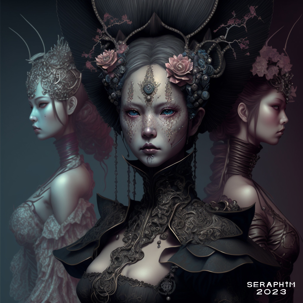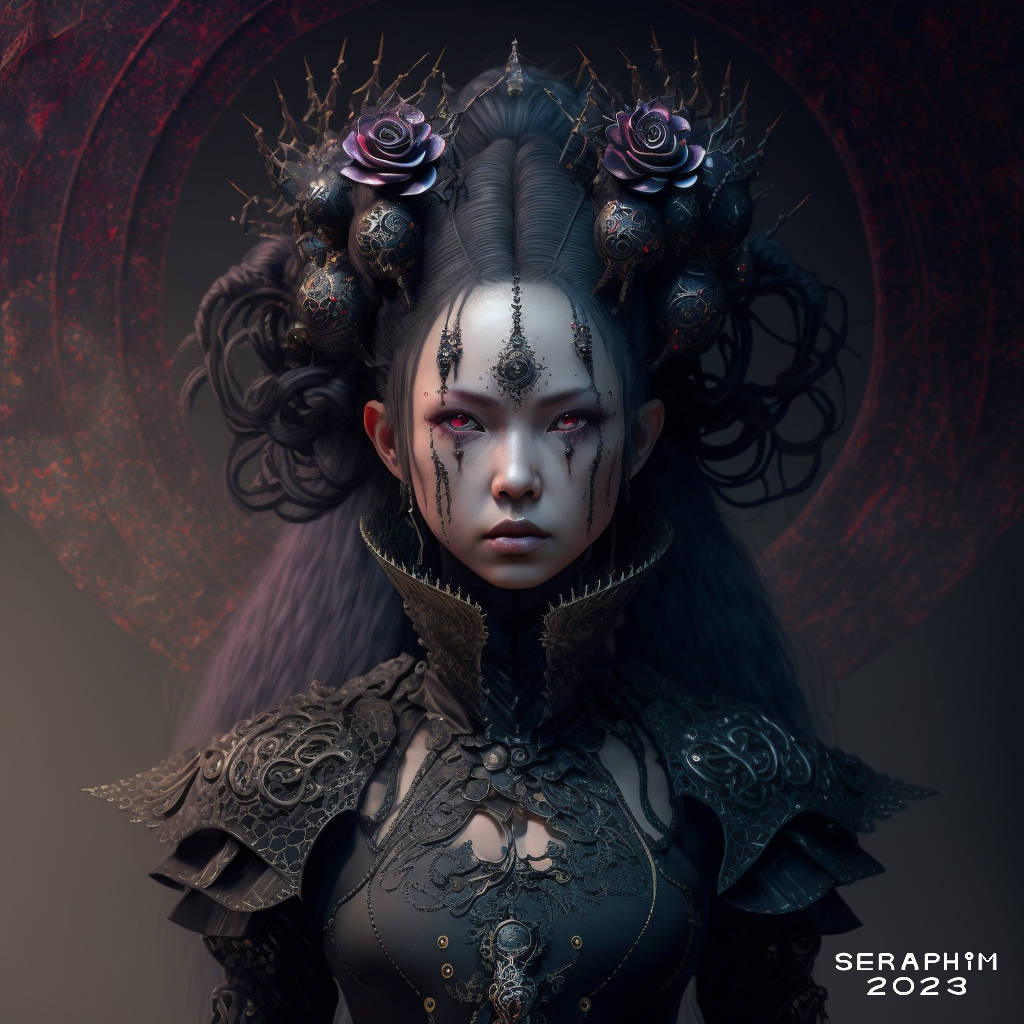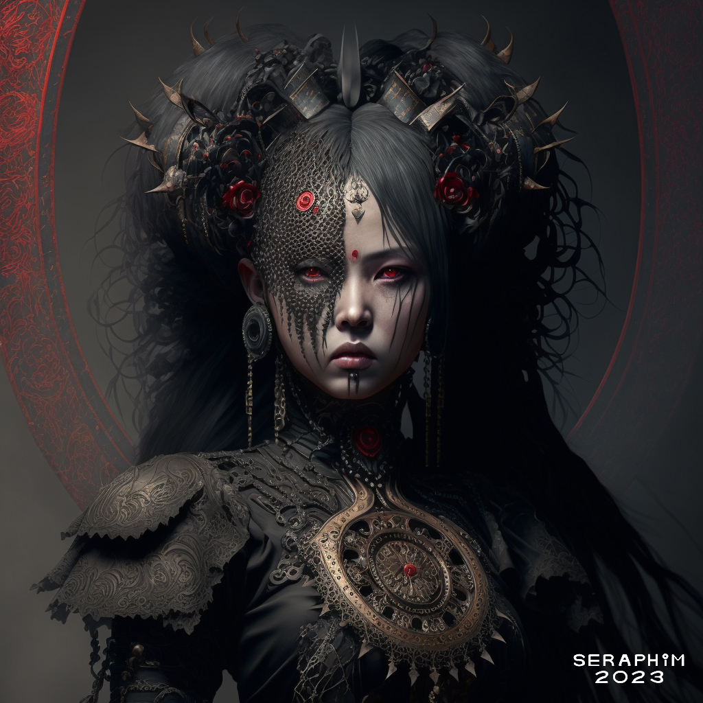 Midjourney is an iterative process. If you were familiar with my digital art before I discovered Midjourney, you will know that ‘iterative’ could have been my middle name… for that reason, I just love this learning process. I have slowly settled on creating these magnificently-attired dwellers from some dark, far-future feudal realm…
