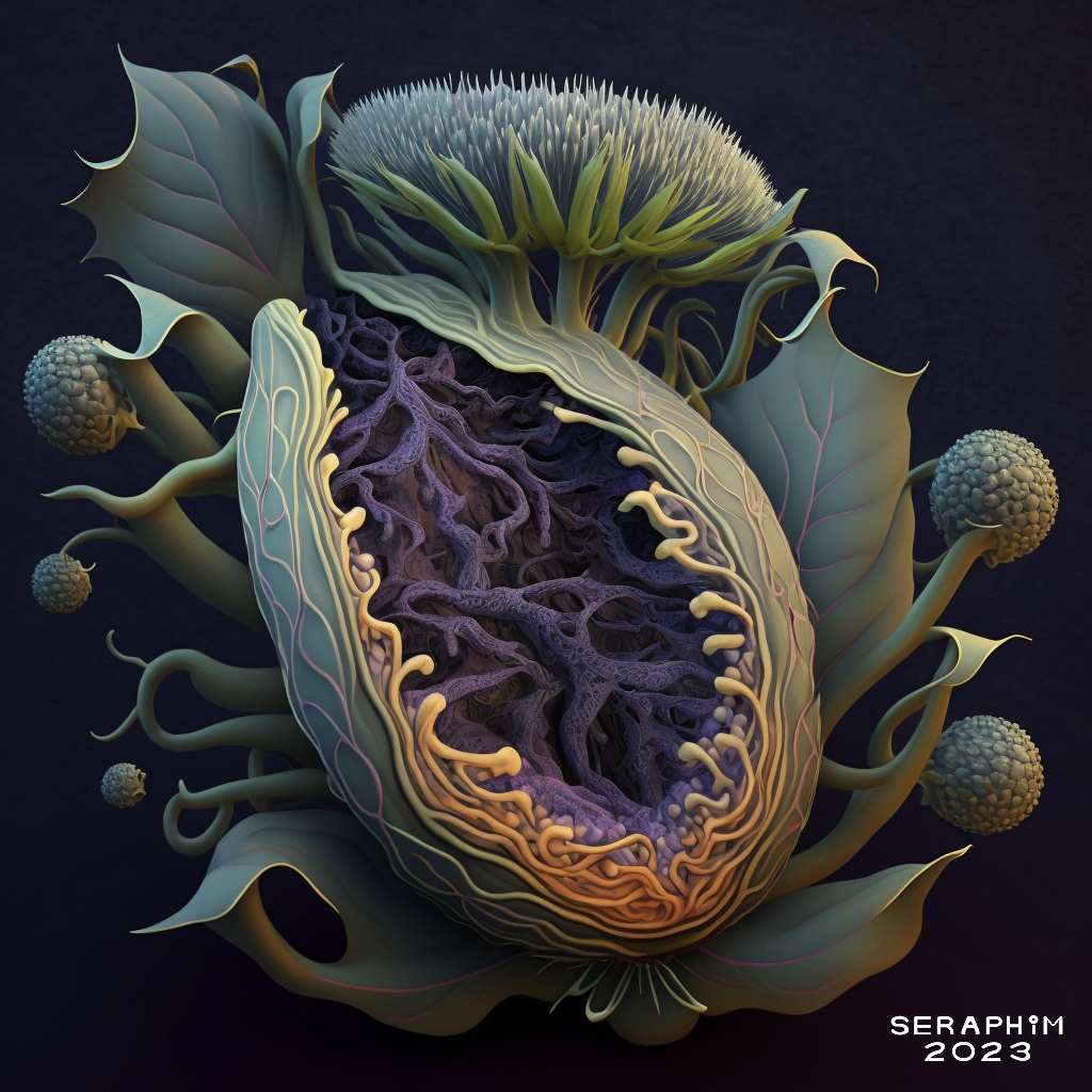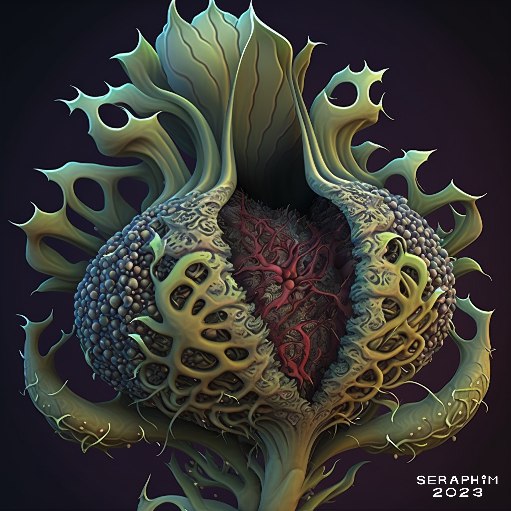 … and my desire to create my gorgeous, strange girls keeps resurfacing. The last iterations of my ‘Machine Dolls’ had begun to look like organic beings created synthetically by dreaming AI’s, though their ‘organic-ness’ still had a synthetic look. I wondered if I could revisit them, and incorporate these alien plants, somehow? Want to see how that turned out?