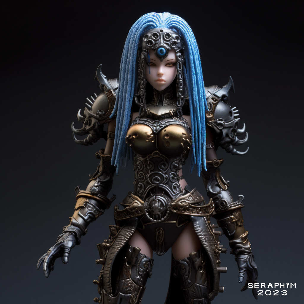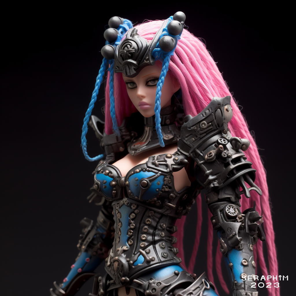 … because, looking at these images from when I first started using the magic prompt with my ‘Battle Doll’ images, they initially weren’t symmetrical, just fabulous…