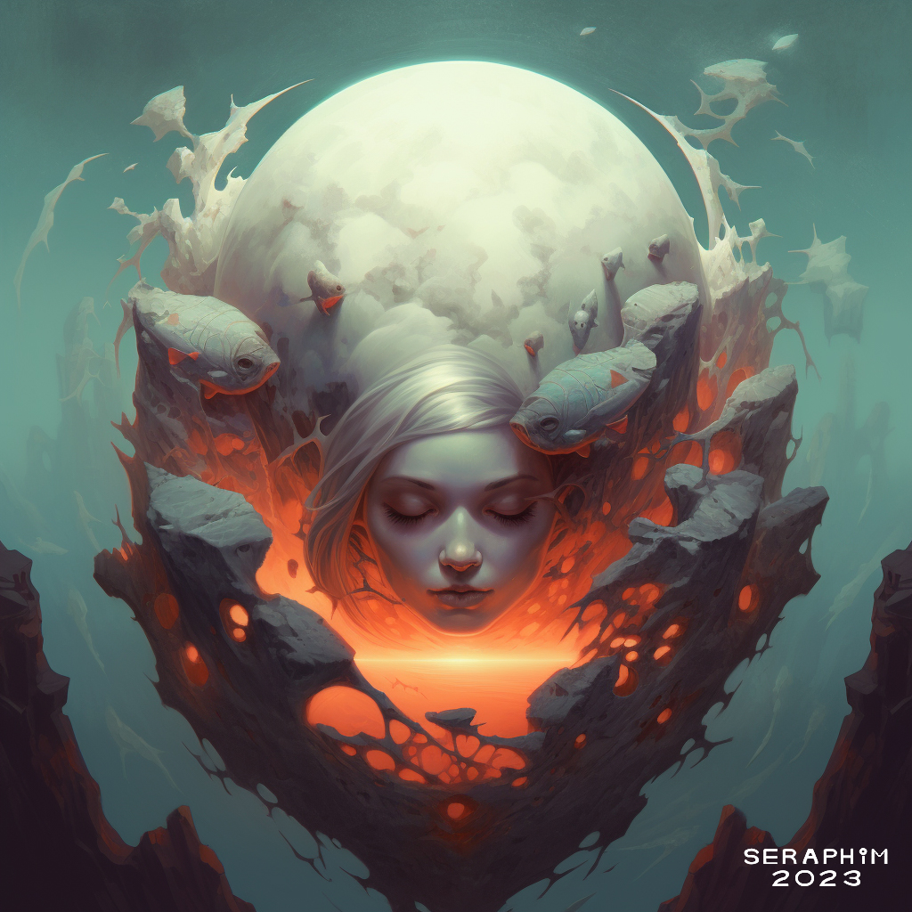 … every now and then, using the same images that have produced predictable results (within the actually unpredictable range I am now working in, because, as I initially said, my ‘magic’ prompt inherently produces unpredictable, or, at least, fairly uncontrollable results) Mj throws out stunningly complete, absolutely perfect images…