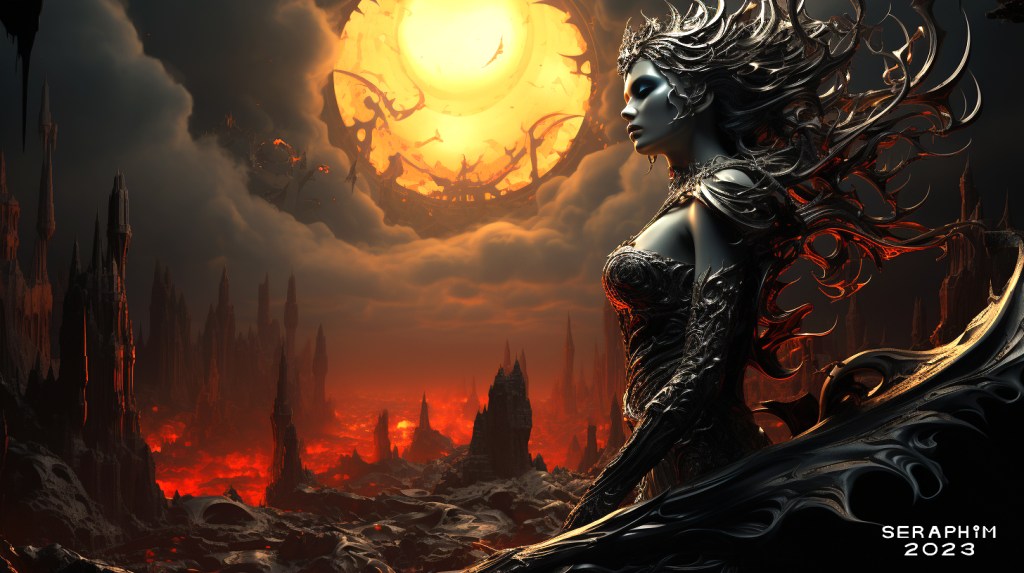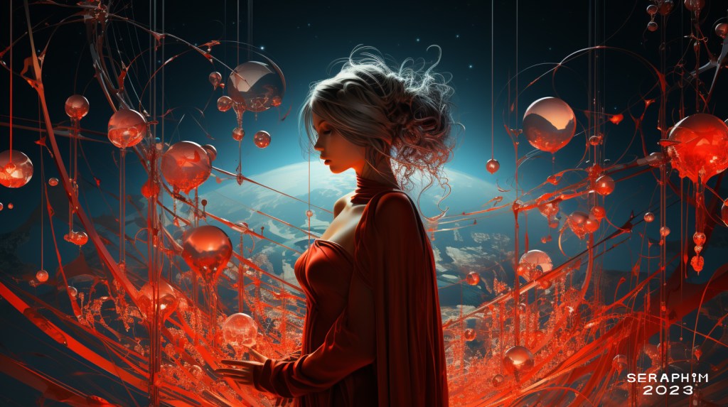 I really feel I am getting somewhere with Mj, these days. I can go a few days constantly creating work I consider substandard… it’s still usually pretty good, but not as good as the above image, or anything I consider my best, these days. I’ve previously explained my work style, but I’ll recap… I simply create shit-tons of images! I doubt any of you really understand just what that means… I literally churn out hundreds of images a day, and if they are even reasonably good, I save them to my hard drive, so I have thousands of saved images from which to draw…