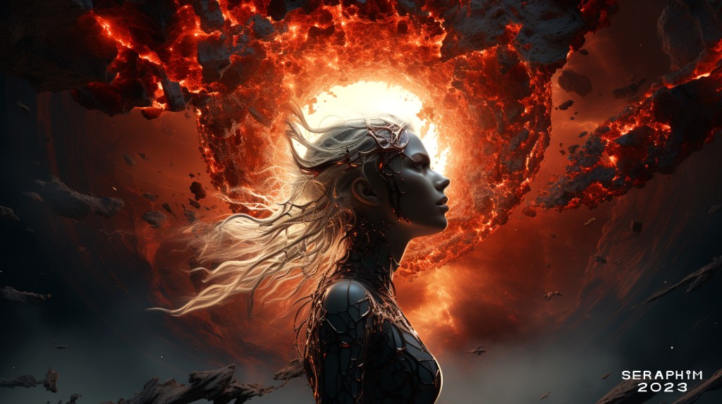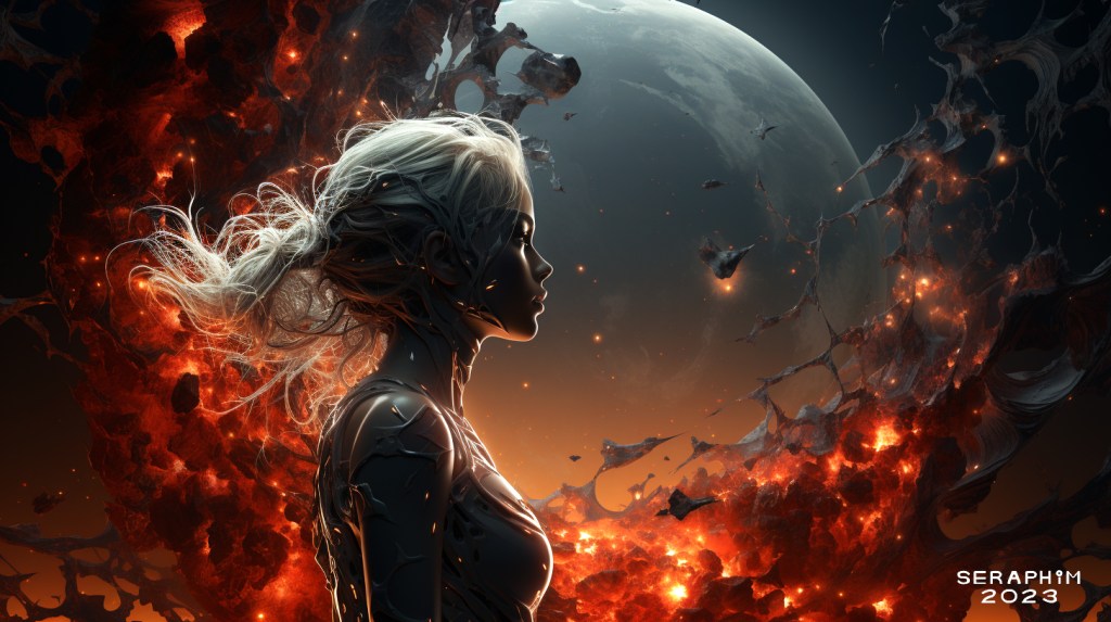 … she is transmogrified, in those cathartic seconds of atomic annihilation… she becomes something else. She finds herself on one of the nascent worlds she built. She is no-longer Daemon, she is made of nearly indestructible star-matter…