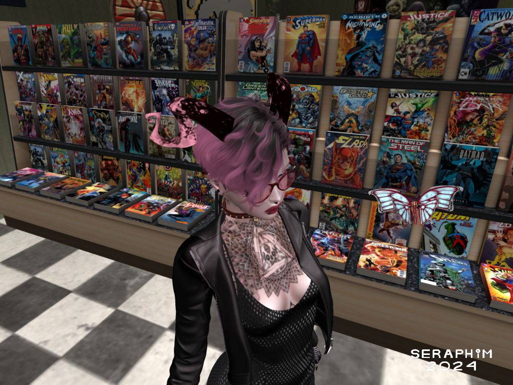 … if you know me, you know I am proudly low-brow in my art appreciation, I tend to find ‘big-meaning, deep and serious’ art with a capital ‘A’ to be, well, bullshit, to be blunt. I never read the artists statement until after I’ve looked at the work, and I generally find the capital ‘A’ artist’s statements to be rubbish spun out of self-importance, then tacked on to their ‘art’ to give it ‘superior’ meaning. Generally I like art that has an obvious meaning, even if that meaning is just beautiful design. I loved everything I saw, here, just for itself, or, as with the critters, because of their cuteness/whimsy. I instantly identified these three woman as ‘muses’ of some kind, engaged in something to do with thread, so, also instantly, made the association of the ‘fabric of reality’, something the human, so, therefore, I, have been interested in for a very long time…