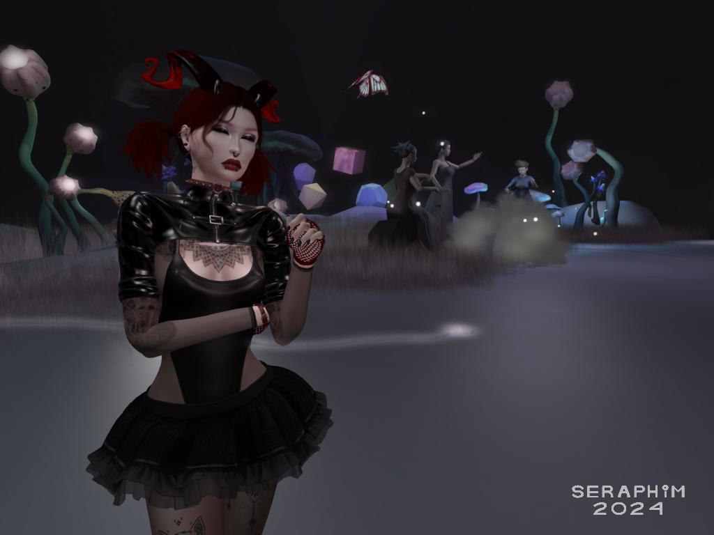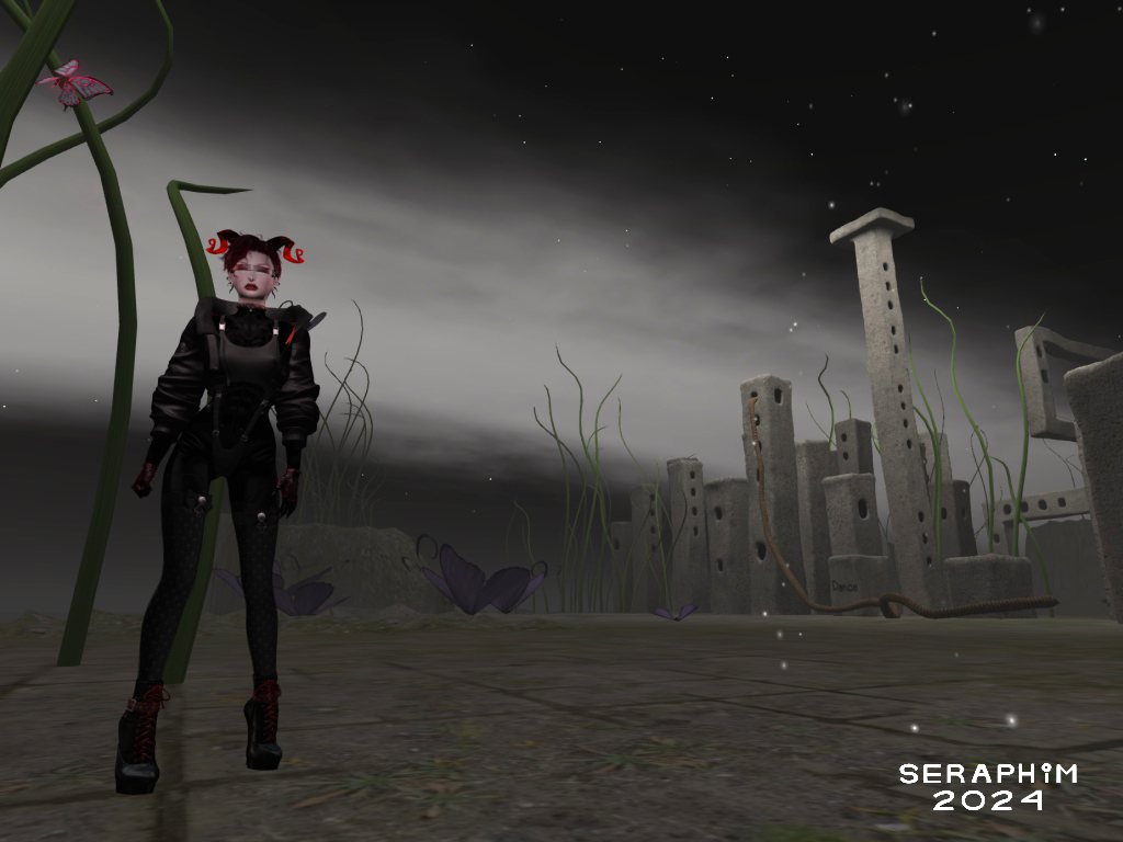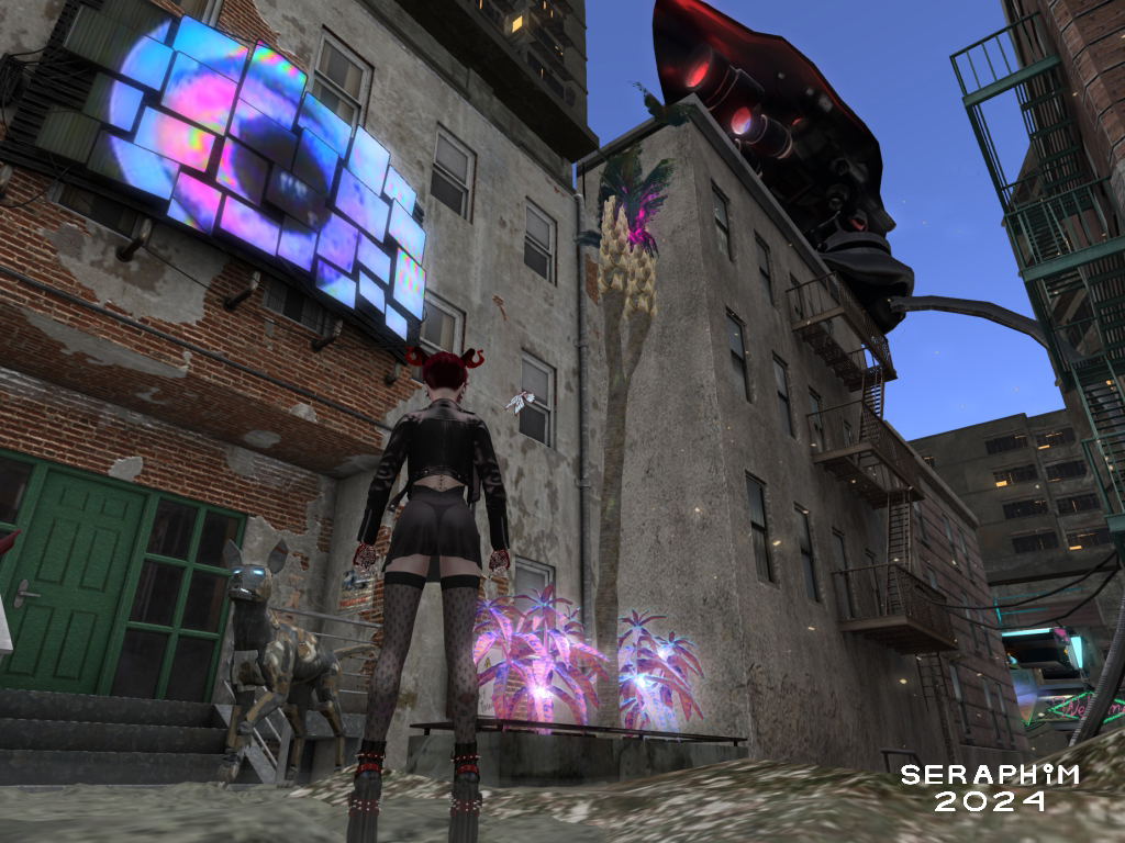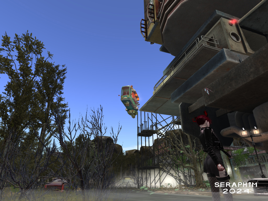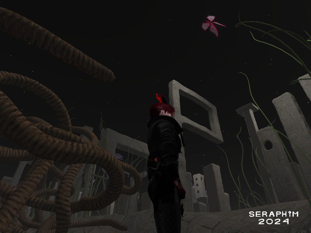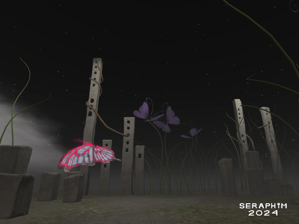 … there are amoeboid-like things flying around. They are playing wonderful music, and they emit light. I describe their flight paths as ‘cruising/loitering/zooming’… that’s what they do. Their passage is constantly lighting up different facets of the sculptural shapes in the environment, showing dimensions and perspectives that weren’t there a second before, and their music builds and recedes with their idiosyncratic perambulations…