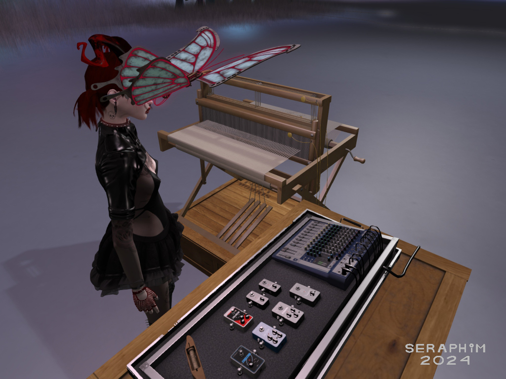 … which, on closer inspection, we could see was hooked up to what looked like recording gear. We suddenly realised that the music the amoeboids were playing could quite possibly be the sound of a shuttle being drawn through the strands of a loom… which we thought was pretty damned beautiful, and totally relevant to the whole ‘strands of reality’, or ‘fabric of reality’ thing we had identified.