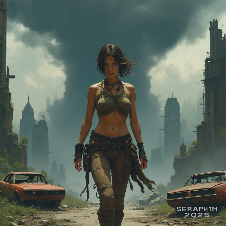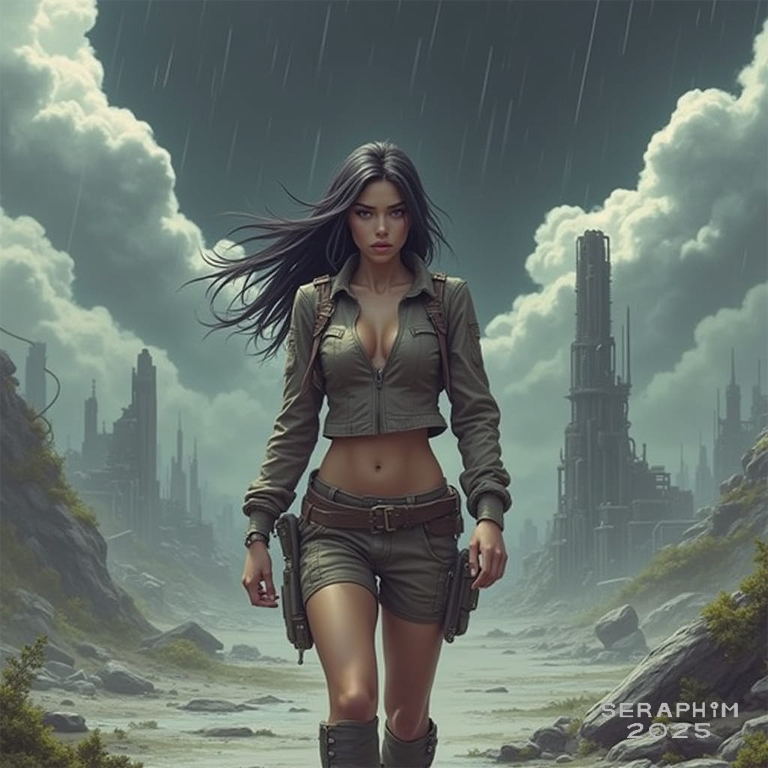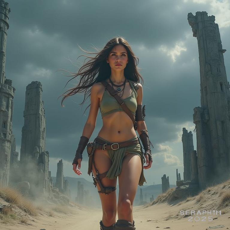 One of our favourite themes… the solitary ‘walker’, survivor of some future apocalypse, a person not to be taken lightly, someone very sure of her own skills and ability to keep on surviving. All these images were done in Night Cafe…