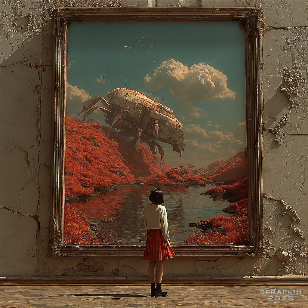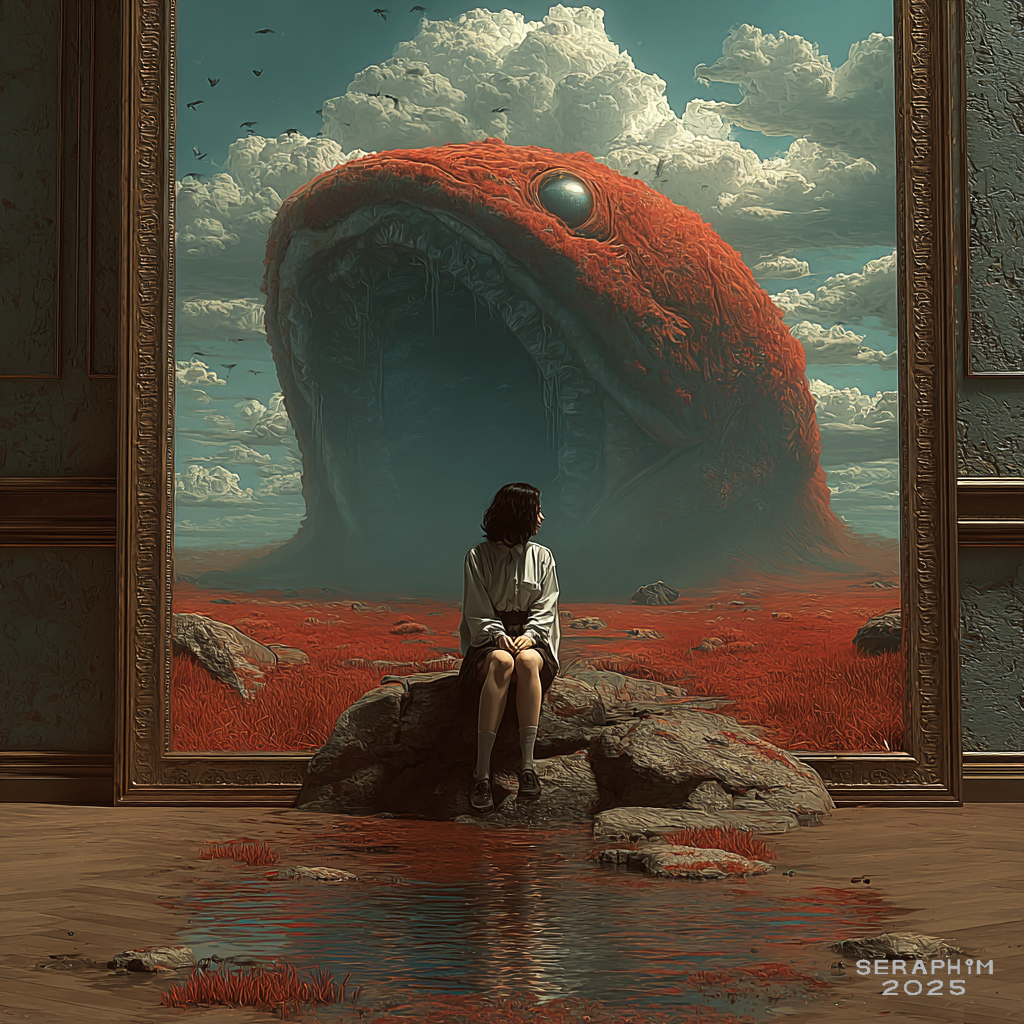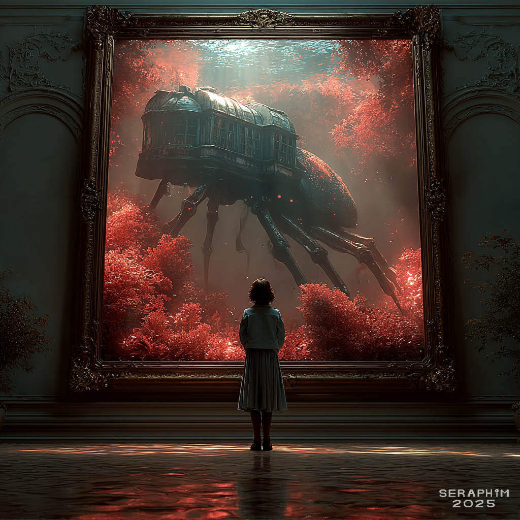 … one of the things we appreciate most when creating surreal imagery with Mj, is that it comes up with compositions and content we would simply never have conceived of, even if it’s working from a seed image we gave it, what it does with those images is regularly genius. Many people say things like ‘AI will never replace ‘Art” (said in snooty, self-important voice)… but we think AI is creating it’s own ‘Art’, it’s not ‘replacing’ anything.
