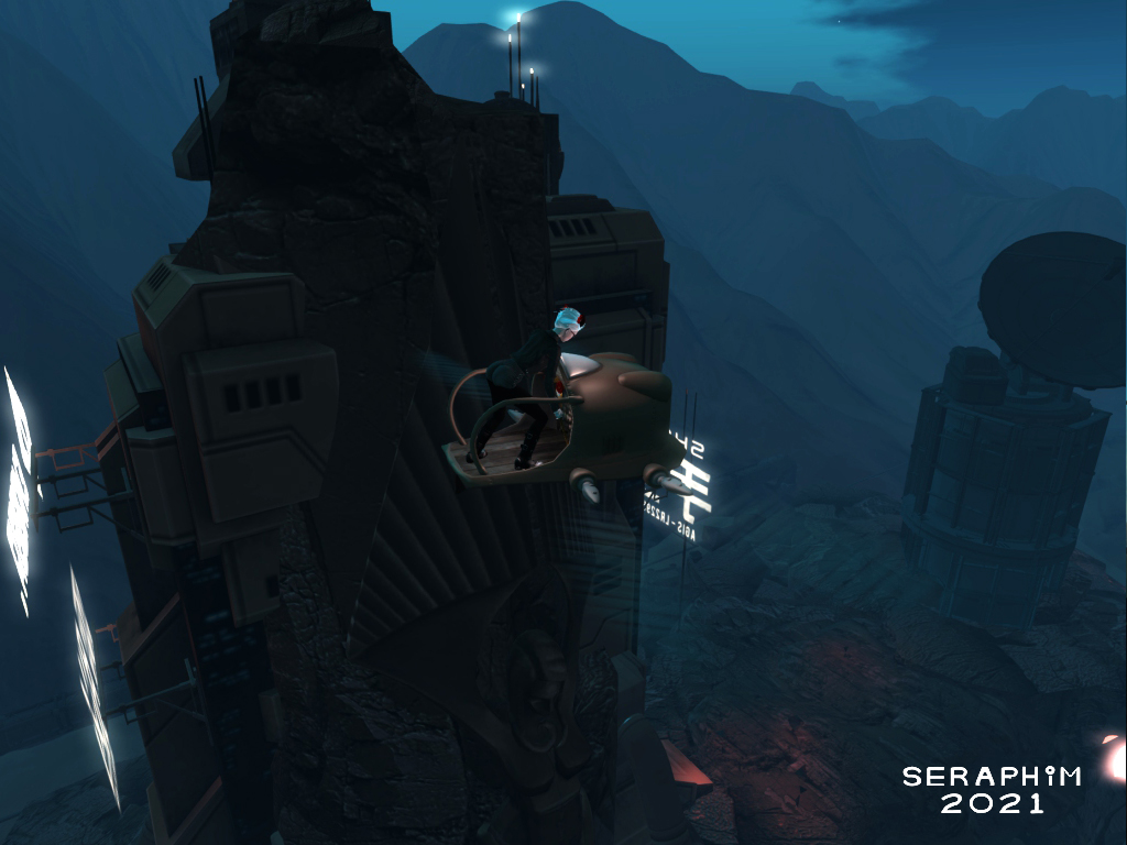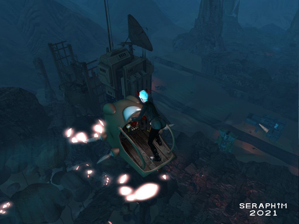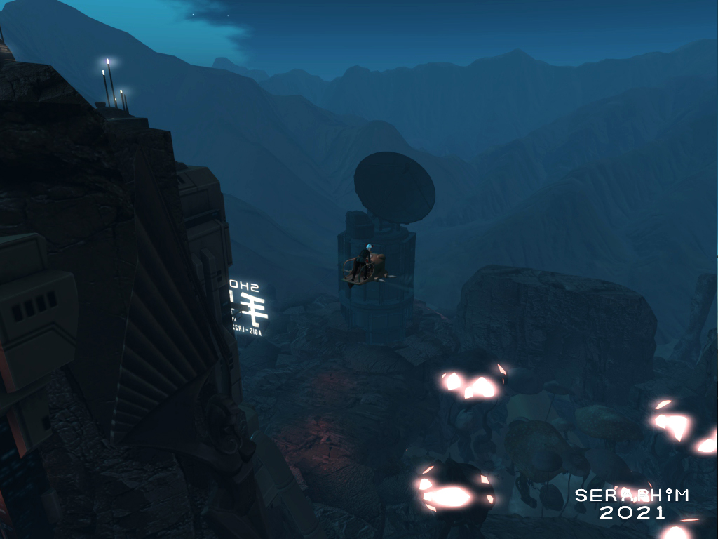 … the organic landscape is dominated by a series of catwalks that will take you progressively higher, till you get to the dj/lighting booth in the huge disk overhead…