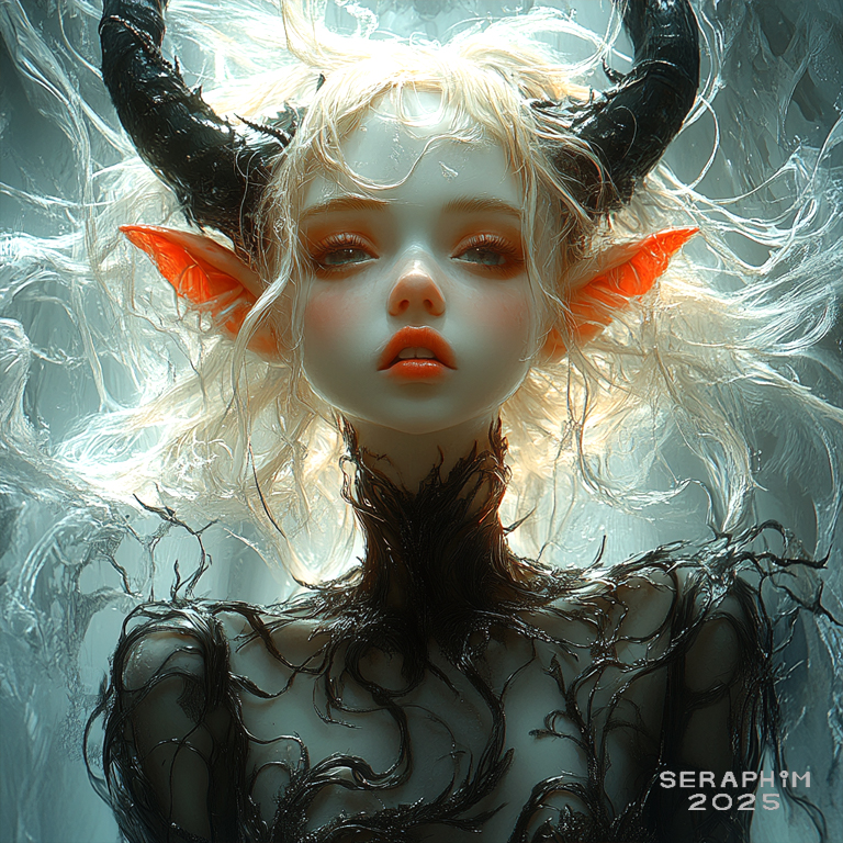 Because common Fae are such sweet, guileless, inquisitive beings, they often wander into the darker parts of the forest, where they fall prey to the brutal, carnal desires of Demons. The offspring of these forced unions are Demon Fae. Demon Fae always keep the beauty of their mothers, but usually also exhibit physical, Demon characteristics…